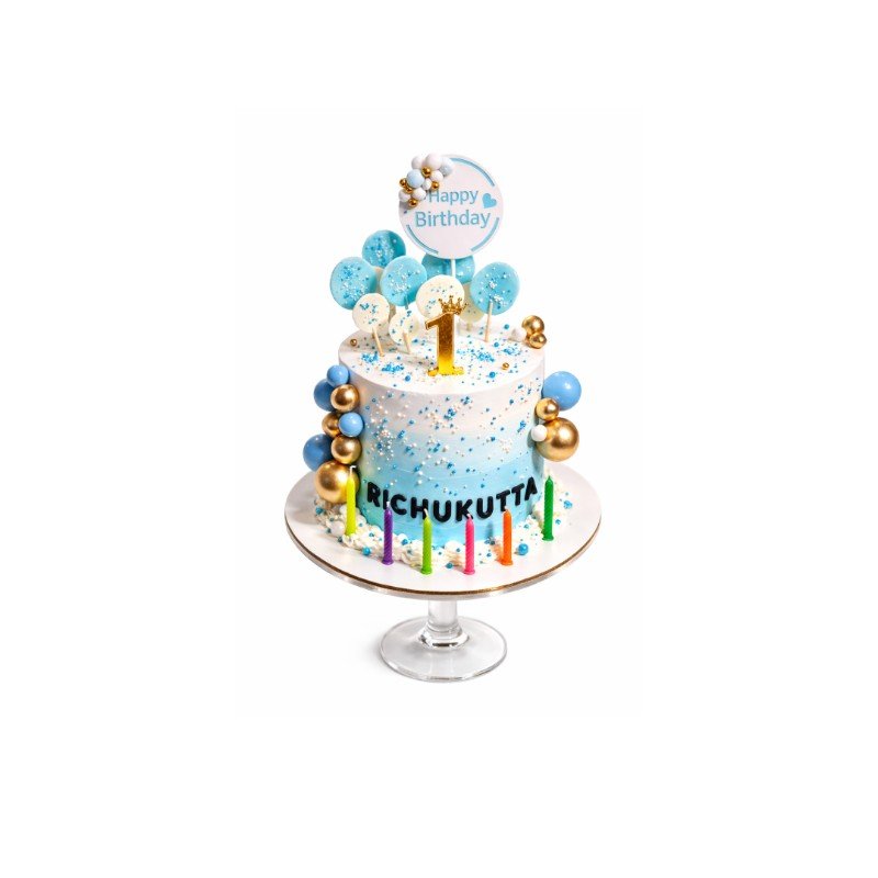 A customized cake designed with creative birthday themes, made with soft sponge layers and creamy …
